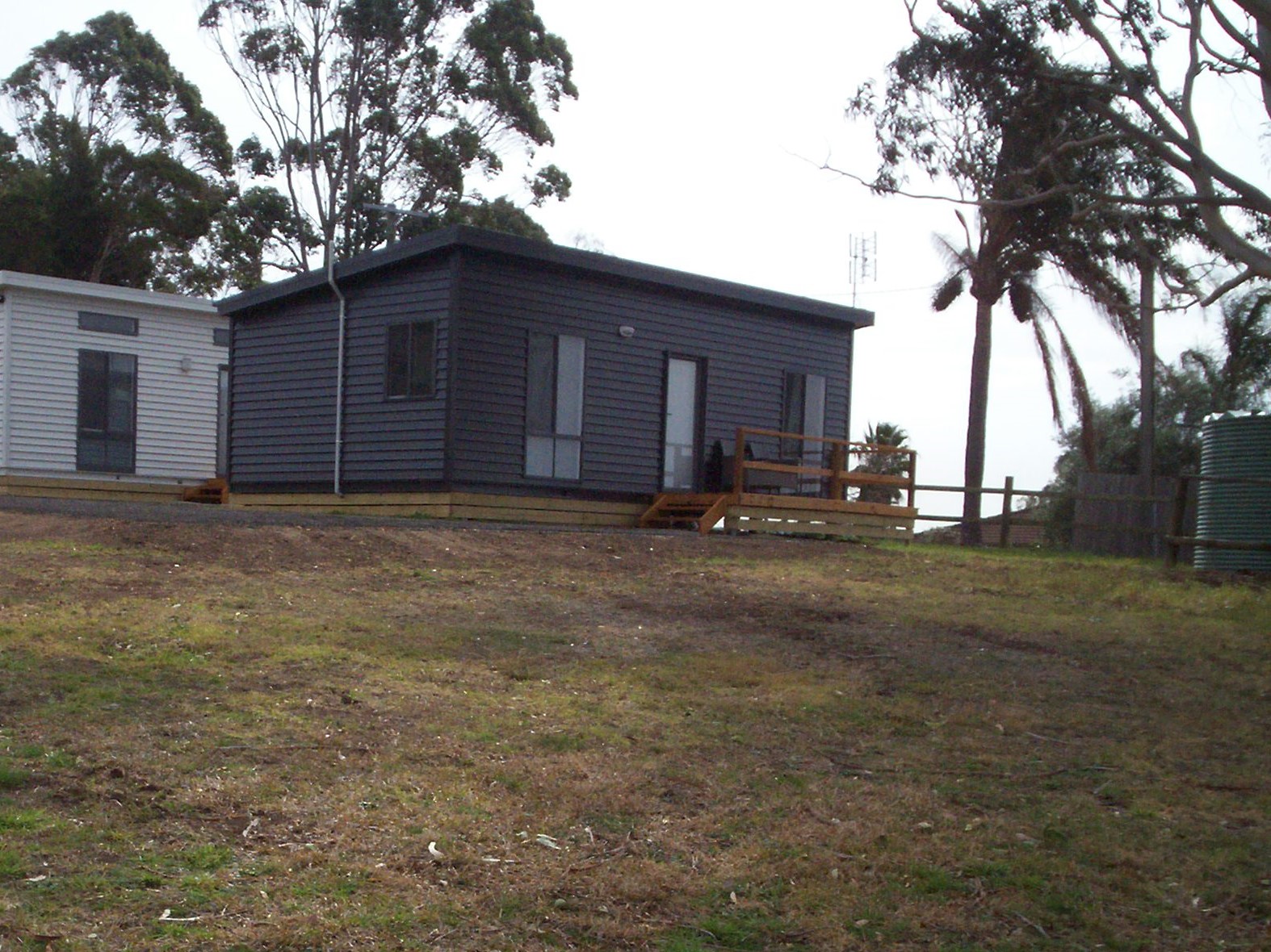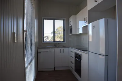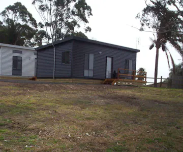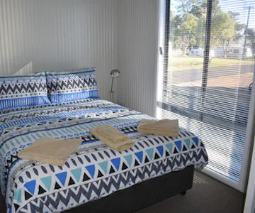 2 Bedroom Cabin with double in main and bunk bed in second bedroom sleeping 4 people There is a kitchen with hotplates oven fridge and dishwasher Lounge with lounge suite and dining table TV and spit system air conditioning Bathroom with shower and toilet Cabins are fully self contained
